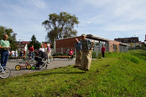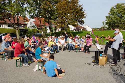 Am letzten September-Sonntag verlegte die Evangelisch-methodistische Kirche ihren Gottesdienst ins Freie. Der Parkplatz beim Luggeles-Kindergarten Sersheim war ideal für Singen, Spielen und Gottesdienst feiern.