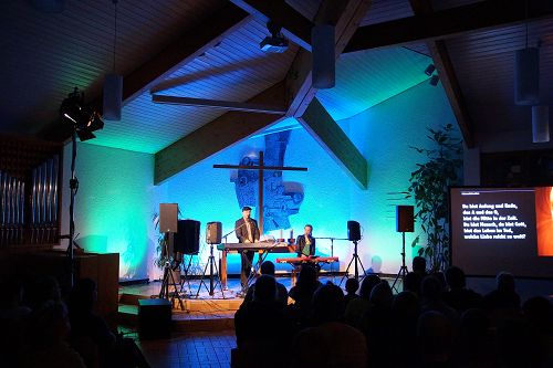 „Mut zum Sein“ so der Titel des Konzerts von Martin Pepper, das er gemeinsam mit seiner Tochter Jennifer am 25. Oktober 2014 in der Evangelisch-methodistischen Kirche in Vaihingen gab. Das Konzert begann mit dem Lied „Willkommen im Land der Begegnung“. Begegnung war verschiedentlich möglich an diesem Abend. Begegnung mit den anderen Besucher, Begegnung durch die Lieder und Texte mit sich selbst und natürlich Begegnung mit unserem Gott, der uns Mut zum Sein macht. In den Liedern, Gedichten und Gedanken während des Abends kam immer wieder zum Ausdruck, dass Gott uns in unsere heutigen Welt und Situationen in denen wir leben nahe ist, als der der Mut macht, tröstet, ermutigt begleitet und uns liebt. Neben den Inhalten der Lieder überzeugten Vater und Tochter Pepper durch ihre Stimmen und die musikalische Begleitung, so dass unter den über 200 Besuchern eine gute Stimmug aufkam. Den Abschluss des Konzerts bildetet zwei der bekanntesten Pepper-Lieder „Rückenwind“ und „Auge im Sturm“ die noch einmal zusammenfassten, dass Gott uns nahe ist, in allen Herausforderungen unseres Lebens.